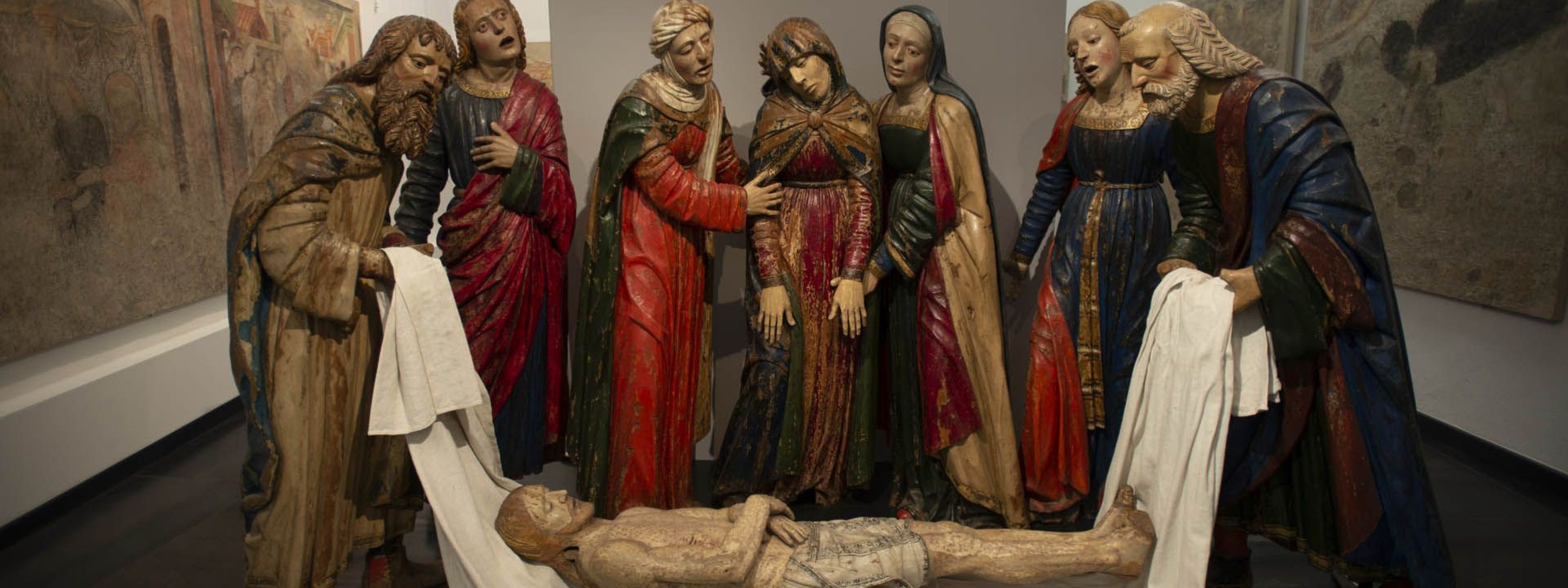 Aprendo l’immagine, puoi vedere le sculture che originariamente popolavano questo edificio: sono statue in legno dipinto, realizzate nell’ultimo decennio del Quattrocento, che per molti anni sono state depositate nei magazzini del Sacro Monte e che oggi si trovano alla Pinacoteca di Varallo.